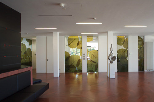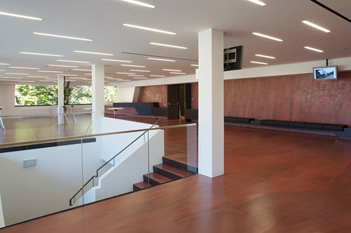 Die ursprünglich im Obergeschoss gelegenen Büros der Kundenbetreuer wurden dem Wunsch nach größerer Kundennähe folgend in das Erdgeschoss verlegt und im räumlich abgesetzten Westteil zusammengefasst. Die vorher im Erdgeschoss situierten Seminarräume sowie die Hausmeisterwohnung befinden sich nun im Obergeschoss (Seminar- und Schulungsräumen) und im aufgestockten Dachgeschoss (weitere Seminarräume und die Hausmeisterwohnung). Dabei wurde die Aufstockung mit dem bestehenden Obergeschoss zu einem zweigeschossigen kompakten, introvertierten, über dem Erdgeschoß schwebenden Baukörper zusammengefasst.