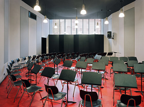 Die akustische Ausstattung der Konzertsäle wurde in Zusammenarbeit mit Quiring Consultants entwickelt. Die akustischen Eigenschaften der Proberäume und des Konzertsaals wurden darauf ausgerichtet, dass sie den Darbietungen des musikalischen Früherziehungsprogramms ebenso gerecht werden wie konzertanten Aufführungen von Orchestern und Chören und dass durch die „Dichte“ der Räume im Gebäude störungsfrei nebeneinander musiziert werden kann. Dem großen Konzertsaal verleihen eine drehbare Bühne und bewegliche Absorber-Elemente eine sehr flexibel und genau einstellbare Akustik. Jedes Instrument findet seine ihm eigene Klangfarbe und gleichzeitig mischen sich die verschiedenen Instrumentengruppen zu einem einzigen großen Instrument, das an allen Plätzen im Saal klar gehört werden kann. (Text: Claudia Wedekind nach einem Text von Andrea Ostertag)