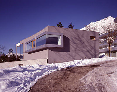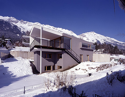 Die privilegierte Lage mit Blick über die ganze Stadt verführt Architekten gern dazu, mit oft dramatischen Gesten das Thema Ausblick zu inszenieren. Unweit der Talstation der Nordkettenbahn von Franz Baumann, einer der Inkunabeln der Tiroler Architekturgeschichte der Moderne, begegnete ein junges Tiroler Architektenpaar der eindrucksvollen Kulisse ganz ohne dramatisch übersteigertes Vokabular: Julia Fügenschuh und Christoph Hrdlovics hatten für das Einfamilienhaus ein nur 470 m² großes Grundstück in Steillage zur Verfügung. Wenig Platz, wenn man bedenkt, dass es darauf auch noch Autoabstellplätze für die Familie und Besucher unterzubringen galt.