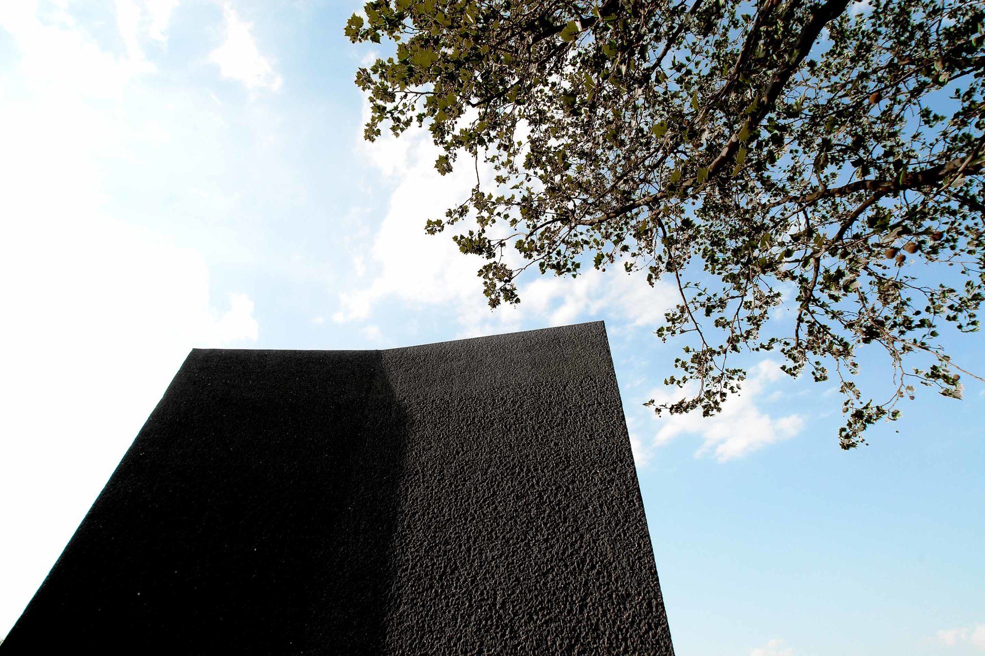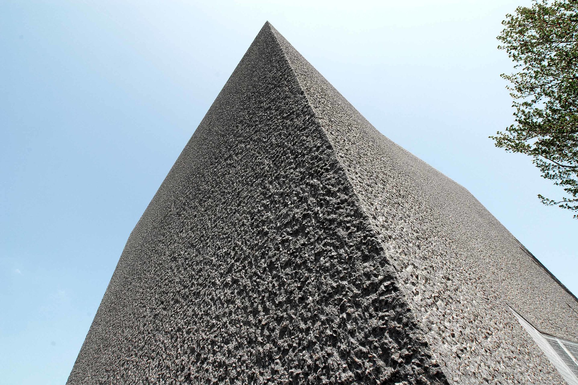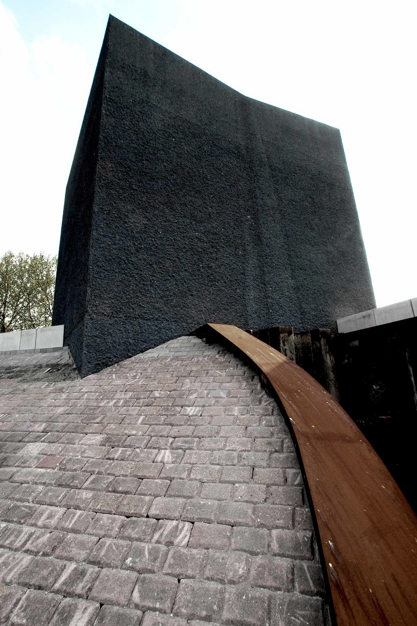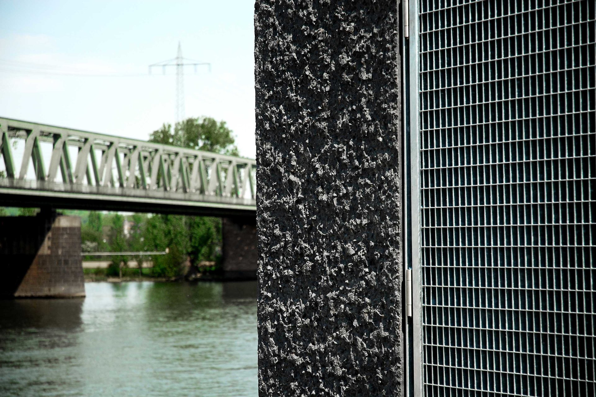 Betriebsgebäude gehören zur technischen Infrastruktur einer Stadt und üblicherweise werden diese ohne jeglichen Gestaltungsanspruch erstellt, in der kurzfristigen Annahme, somit wirtschaftlicher zu bauen. Diese belanglosen Gebäudehüllen bilden oftmals die Grundlage für Verwahrlosung und Vandalismus. Sie verursachen stetige Renovierungskosten, ohne jemals eine tatsächliche Qualität zu erreichen. Daher entschied sich der Auftraggeber, die Stadt Mainz/Wirtschaftsbetrieb, an der Rheinuferpromenade des künftigen neuen Stadtquartiers Zollhafen für eine nachhaltige Gestaltung. Es gibt keine Typologie für Pumpwerke. Den Architekten war es dennoch wichtig ein Gebäude zu entwerfen, welches die Gebäudefunktionen Hochwasserpumpwerk, Auslassbauwerk und Wehranlage thematisiert. Der fenster- und fugenlose Baukörper ist im Sinne der architecture parlante (C.N. Ledoux 1736-1806) lesbar als purer, schwerer Monolith, welcher auf einer großen Wasserader lagert und den Strom reguliert: Auf der Berme (horizontaler Absatz in der Dammböschung) überspannt eine Fußgängerbrücke das geöffnete Auslassbauwerk. Von dieser Brücke aus ist der tiefe Raum des unterirdischen Gebäudeanteiles sichtbar, mit den Pumpenschächten und der Hubwehranlage. Der Betrachter erahnt, welche Wassermassen hier im Bedarfsfall anfallen. Die Oberfläche des anthrazitfarbenen Betonkubus mit gekanteten Seitenflächen und Traufkanten wurde vollflächig steinmetztechnisch bearbeitet (gespitzt). Durch die 30mm tiefe Rauheit der Oberfläche erinnert nichts mehr an eine konventionelle Bauentstehung. Die geknickten Flächen inszenieren den Sonnenverlauf mit hellen und verschatteten Flanken. Die Oberflächenrauheit verstärkt dieses Spiel in der Wechselwirkung von Streiflicht, vollflächiger Ausleuchtung, zu erneutem Streiflicht und Schatten. Die wenigen, rein technischen Anforderungen geschuldeten, Gebäudeöffnungen werden bündig zur Oberfläche mit verzinkten Stahlgitterrosten geschlossen. Das flache Dach entwässert direkt über die Fassade zum Auslassbauwerk - es wird sich eine Vermosung dieser Fassade einstellen. Das Altern der gesamten Oberflächen ist Entwurfsbestandteil, d.h. das Bauwerk wird zunehmend seine konstruierte Erscheinung und zeitliche Zuordenbarkeit verlieren. (Text: Architekt)