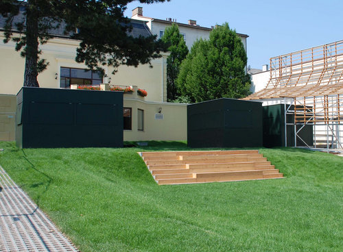 fest (&) wiese ist abgestimmt auf das Doppelleben von Haupt- und Nebensaison: die Eingriffe können abgebaut werden, oder stehen bereit zur Zweckentfremdung als Liegepritschen, Aussichtswarten und Pavillons. Für den Zeitraum der Festaktivitäten werden bessere Bedingungen geschaffen (Infrastruktur, eine neue Bühne, dauerhaftere Stände), dennoch bleibt aber der spontan-temporäre Charakter erhalten.