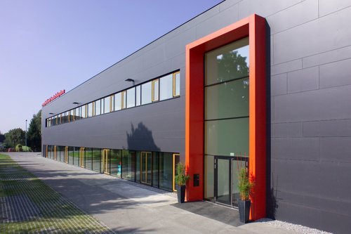 Konsequent folgt `Drexel und Weiss energieeffiziente Haustechniksysteme GmbH´ auch bei den Überlegungen zu Neu- oder Umbau des Betriebsgebäudes der Firmenphilosophie, die den bewussten und optimierten Umgang mit energetischen Ressourcen fordert. Man entschloss sich zu mieten und war überzeugend. Für Eigentümer und Vermieter der Gewerbepark Wolfurt Leasing GmbH war es plausibel, dass die Investition, eine Gebäudehülle in Passivhausqualität bereitzustellen, nachhaltig ist. Die gesamte Planung, die behördlichen Genehmigungsverfahren und der Umbau konnten in zehn Monaten vom Projektstart bis zum Umzug durchgezogen werden.Geringfügige Eingriffe in die Volumetrie des Gebäudes waren notwendig. Mit der Erhöhung von niederen Bauteilen und dem Abbruch bestehender Aufbauten wird das äußere Erscheinungsbild des Gebäudes beruhigt und stellt sich nun mit eindeutiger Ausrichtung, neuer Eingangsfassade, von weitem sichtbarer roter Firmenbeschriftung am Dach und dem zweigeschossigen roten Eingangsportal als selbstbewusstes Industriegebäude dar, das seinen Standort neu definiert und in seiner Maßstäblichkeit den Dialog zur umliegenden Wohnbebauung aufnimmt.