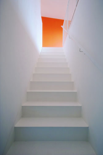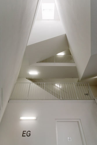 22 Stiegen erschließen die 169 Wohnungen im Prinzip der kurzen Wege zum Freiraum. Im ersten Dachgeschoss befindet sich ein durchgehender Erschließungsgang, der alle Stiegen miteinander verbindet. Die Bewohner werden am Orasteig künftig miteinander und nicht nebeneinander leben, so sieht es das Nachbarschaftskonzept vor. Im Unterschied zu Projekten wie der Sargfabrik, wo ein Wohnprojekt aus einer Gemeinschaft von Interessierten entstanden ist, wird die Gemeinschaft hier vom Büro raum & kommunikation initiiert. Bereits in der Bauphase wurden Treffen der künftigen Bewohner organisiert, mit dem Ziel, Nachbarschaft zu fördern: Interessensgemeinschaften für Nordic Walking, Vereinbarungen für Sommerfeste oder Nutzungen der Mieterbeete - die Entwicklung der Nachbarschaft wird hier nicht dem Zufall überlassen. Nach der Übergabe der Wohnungen wird das „Community Organizing“ ein Jahr lang die Bewohner betreuen, erst dann wird sich die Projektsteuerung aus dem Wohnhof zurückziehen, aus einer dann hoffentlich funkionierenden Nachbarschaft. (Text: Martina Frühwirth)