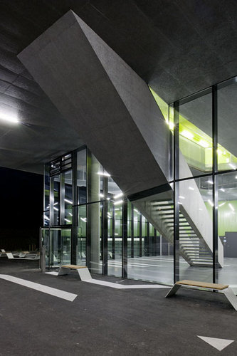Über dieses Niveau 0 ragt nun die Auskragung des ersten Bauteils (Mechatronik) und bildet das eigentliche Entree zum Science Park.