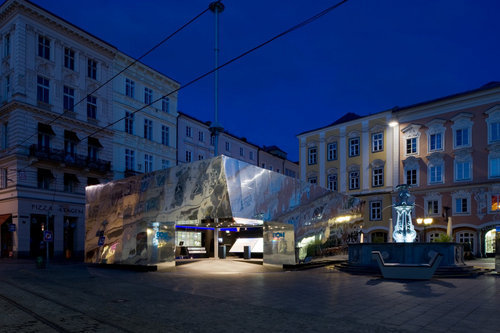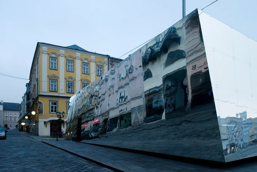 In Abhängigkeit von Distanz und Blickpunkt, interpretiert und kommuniziert die Fassade einfallende Lichtstrahlen aus der umgebenden Szenerie des Linzer Hauptplatzes. Besonders wahrnehmbar ist dieser Effekt aus der Bewegung, wie etwa von der vorbeifahrenden Straßenbahn aus. Im metaphorischen Sinn ist dieser „Spiegel zur Welt“ (zit. Martin Heller, Intendant von Linz09) das analoge Äquivalent zu dem, was die „Live Bits“ Ausstellung mit weltweit vernetzten Digitalobjekten zeigt.