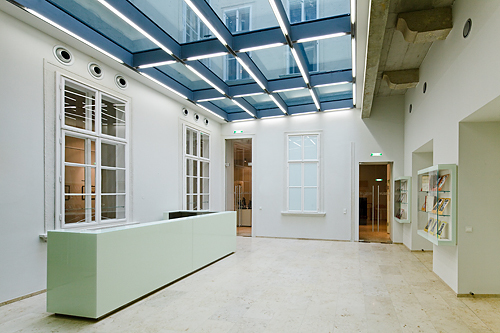 Unter solchen Voraussetzungen kann der Architekt nur noch strukturell denken, nicht in Gestaltungsdetails. Wichtige Elemente der historischen Substanz – etwa der Barocksaal in der Beletage – wurden dabei mit aller Sorgfalt behandelt. Die heutigen Anforderungen schlagen sich vor allem in einem Multimedia-Saal, teilbar, einfach, funktionell, nieder. Und die Möglichkeit eines Rundumgangs wurde geschaffen.