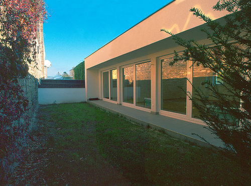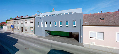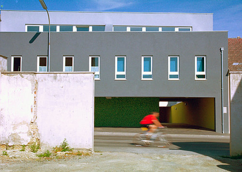 ein stiller Hof zur Stadtmauer; hohe Raumqualität und Niedrigenergiestatus durch klugen Einsatz von Standarddetails; farbige Akzente im öffentlichen Bereich. Eine aktuelle Interpretation der regionalen Hofhaustypologie. (Text: Otto Kapfinger)