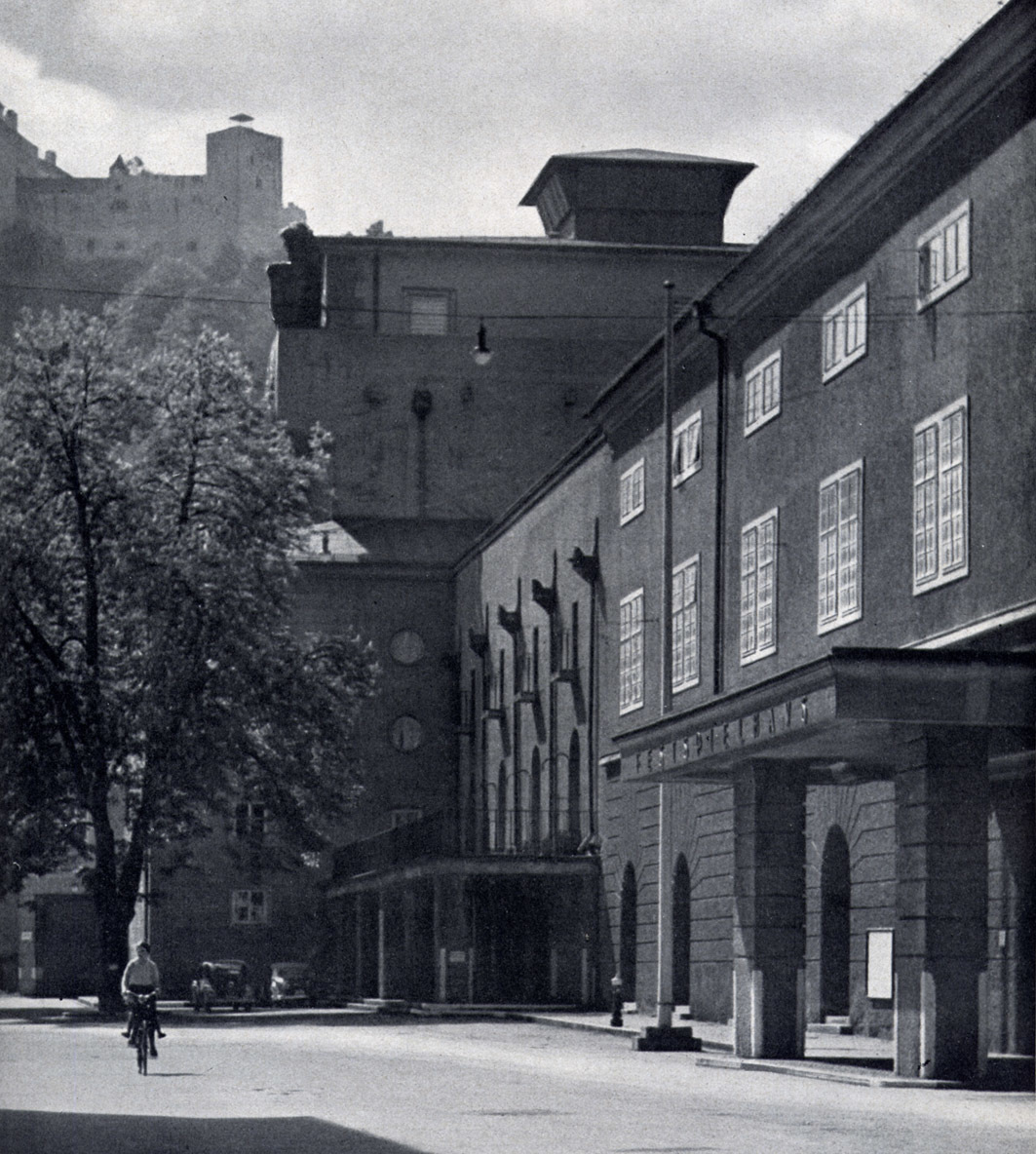 Der Meilenstein für die Architektur der Zwischenkriegszeit in Salzburg drückte gemeinsam mit dem benachbarten Kolleg St. Benedikt in St. Peter von Peter Behrens 1924/26 erstmalig in der Altstadt eine neue Haltung aus: Anstelle plakativ-historisierender Anpassung bezogen sich die Architekten kreativ auf Bautradition, Geschichte und Ort, erzielten eine Eingliederung in den historischen Kontext. In diesem Geist interpretierte Holzmeister auch 1937/38 den neuen monumentalen Bühnenturm als Bastion des anschließenden Massivs des Mönchsbergfelsens.