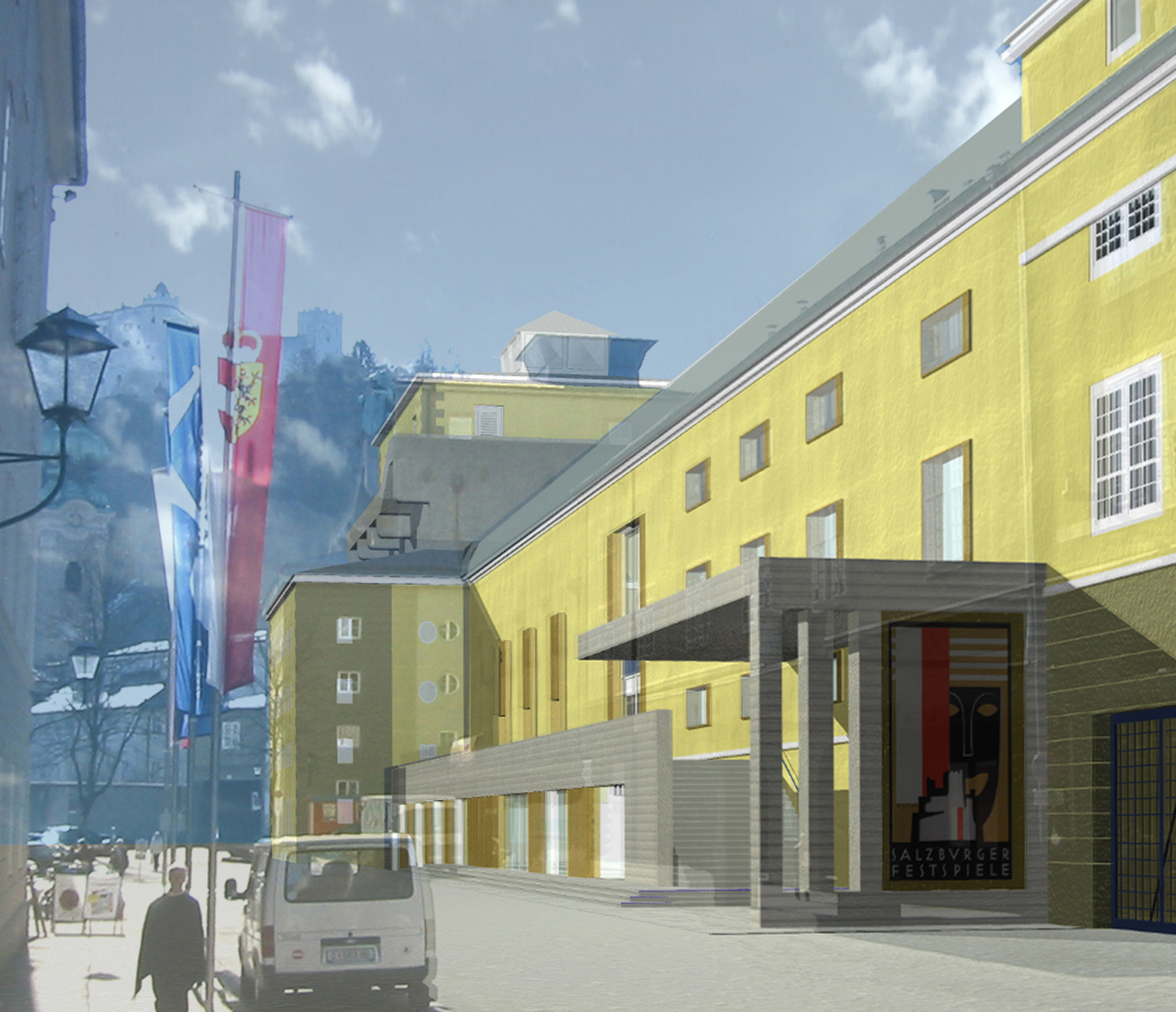 Während ICOMOS Österreich „die Erhaltung zumindest der Außenerscheinung“ der Holzmeister-Fassade von 1926 als „Wahrzeichen der Festspielstadt“ forderte, genehmigte die Sachverständigenkommission für die Altstadterhaltung (SVK) den Abbruch. Sie begutachtete unzählige Male Holzbauers Neubauprojekt, im März 2003 einmal verstärkt durch Mitglieder des Gestaltungsbeirats. GB-Vorsitzender Klaus Kada sprach dabei „an einem der wichtigsten Orte der Welt“ vom „schlechtesten Projekt für ein Musiktheater“, das er „je gesehen“ habe.
