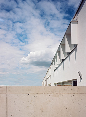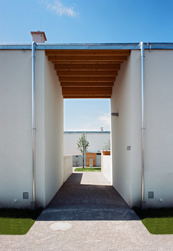 Linsberger spricht im Zusammenhang mit dem differenzierten Freiraumangebot von einer „Partitur der Intimität“: „Bei keinem anderen Gebäudetyp steht der Freiraumbezug so im Mittelpunkt wie beim Atriumhaus, wo das Wohnen programmatisch zum inneren Freiraumsystem zentriert wird.“ Das Atriumhausprinzip wurde bei dieser Anlage als räumliche Abfolge kleinhofähnlicher Situationen neu interpretiert: „An den zentralen, gehölzakzentuierten Kleinhof gruppieren sich intimere, private hofähnliche Situationen, die den Übergang zwischen Innen- und Außenraum subtil inszenieren.“ (Text: Gabriele Kaiser)