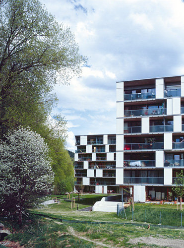 Trotz dieser maximalen Öffnung entsprechen die vordergründig in Hinblick auf Wohnqualität konzipierten Gebäude den aktuellen Niedrigenergiehausstandards, zudem tragen Solarkollektoren für die Warmwasseraufbereitung auf den Dächern zur energetischen Effizienz und Nachhaltigkeit bei. (Text: Claudia Wedekind)