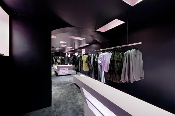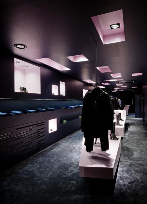 Einem Stollen entsprechend ist der unter der Erde befindliche Verkaufsraum als dunkle Hülle konzipiert. In Wand und Decke sind Schaukästen eingearbeitet, durch die das Licht in den dunklen Raum fällt. In der Mitte steht eine große Verkaufsskulptur, alles ist auf die Verkaufsobjekte fokussiert. (Text: Architekten)