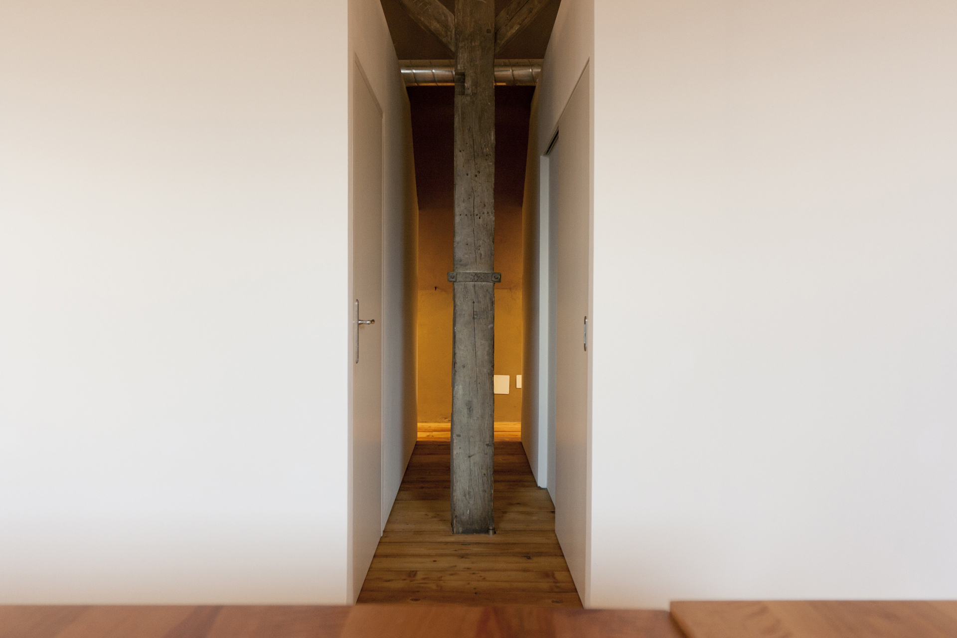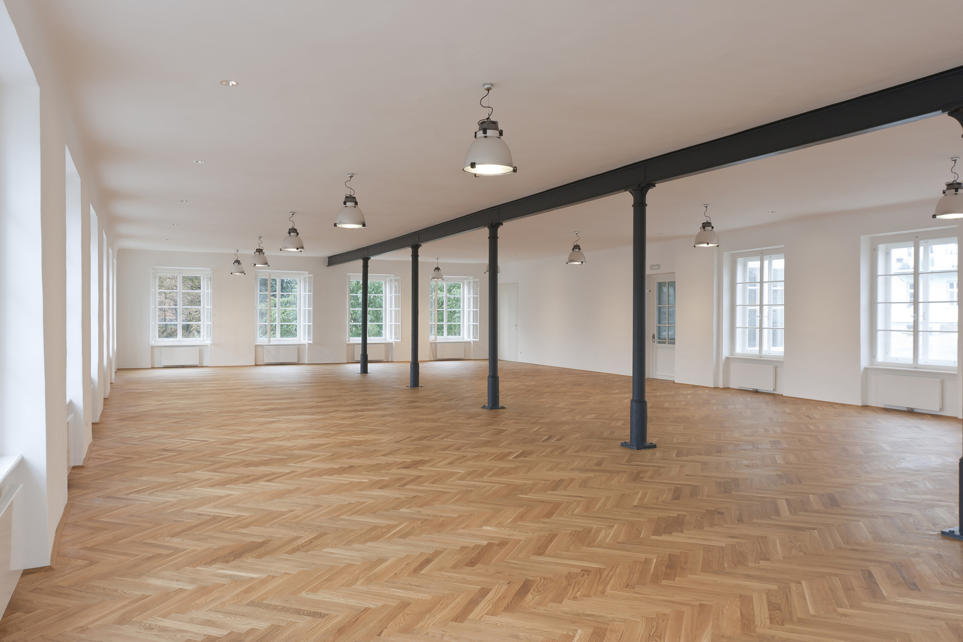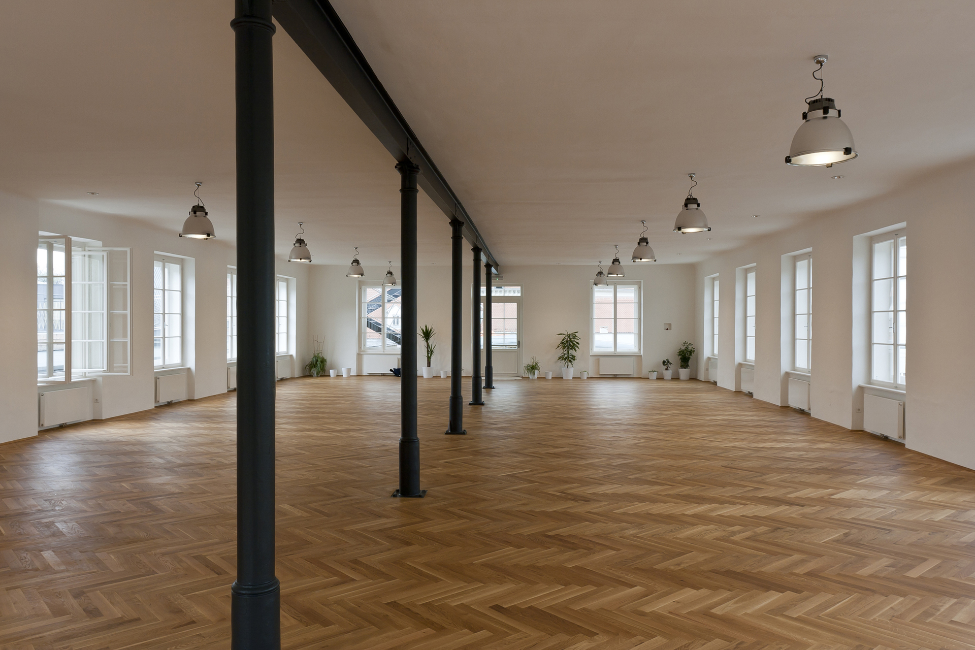 Die Räume am Dachboden und im 2. OG eines Webereigebäudes der ehemaligen Schafwollwarenfabrik nahe dem Lendplatz versprühten zwar Industrieromantik, waren ansonsten aber wenig einladend: Strom, Wasser, Heizung und Dämmung waren nicht vorhanden, die Fenster großteils zerstört. Nutzbarmachung ohne die Seele des Ortes zu zerstören war die Devise des sensiblen Umbaus von Architekt Siegfried Frank.