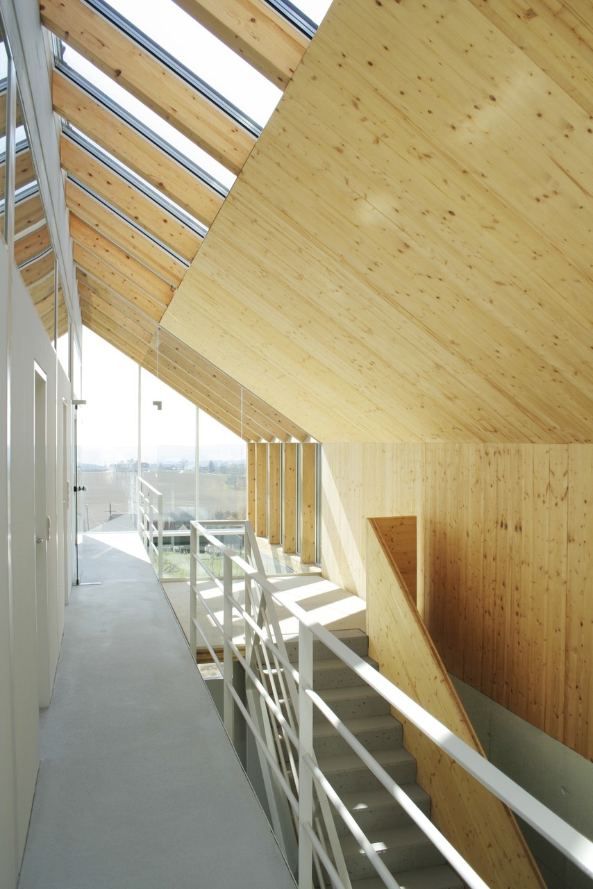 Typologisch wird das traditionelle bäuerliche Wohnhaus mit offener Erschließung der Obergeschoße aufgenommen und weiterentwickelt. Durch die Einhausung von Außentreppe und dem trationellen „Gangl“ mit der großzügigen Verglasung wird einerseits ein Klimapuffer hergestellt, andererseits dem Bewohner der geforderte Fernblick ermöglicht.