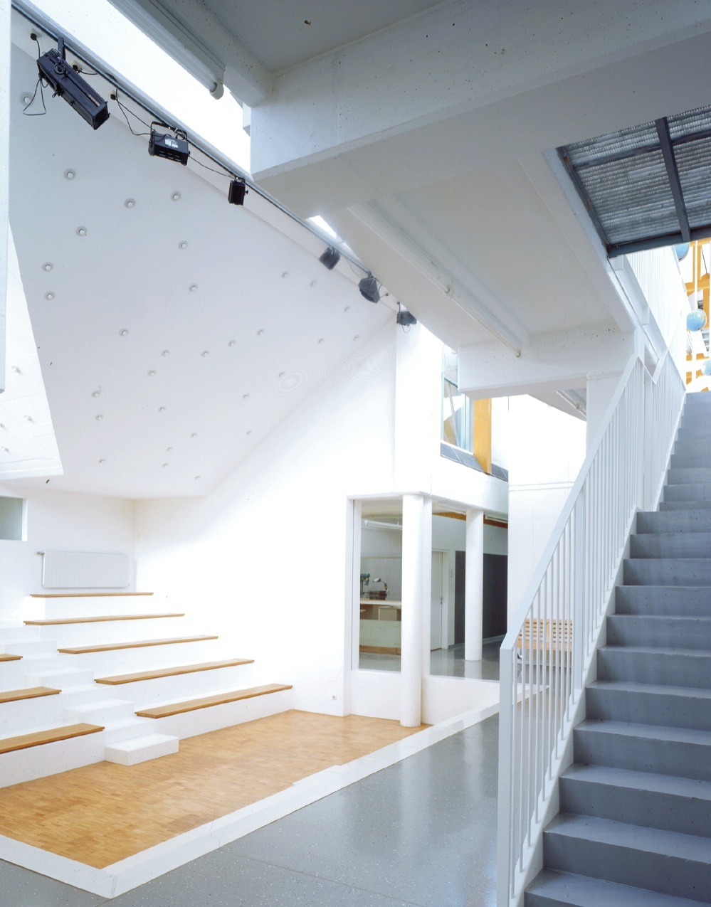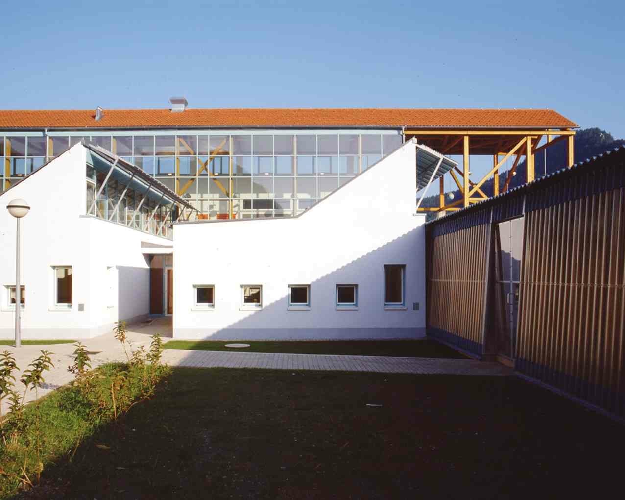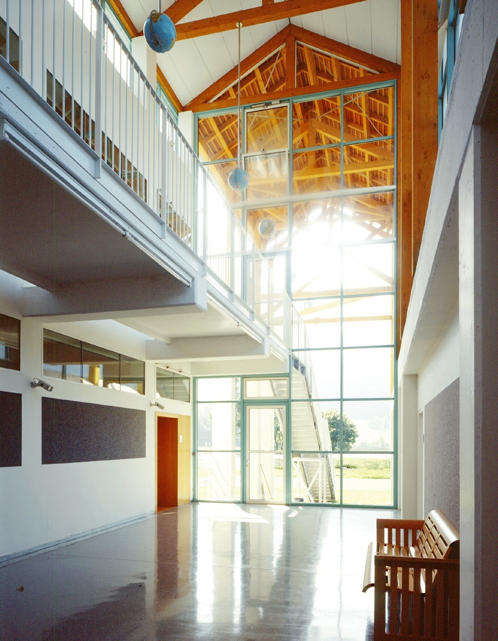 Das Energiekonzept wurde als steirisches Pilotprojekt für die Nutzung von Abwärme realisiert. Die verbrauchte Luft strömt aus den Unterrichtsräumen in die unter leichtem Unterdruck gehaltene hohe Halle, wo ihr in der Dachzone Wärme entzogen wird, die über einen Speicher wieder in den Heizkreislauf eingespeist wird. Zusätzlich wird die Solarenergie der in die Halle einstrahlenden Westsonne über Wärmepumpen zur Erzeugung von Warmwasser im Turnsaal genutzt.