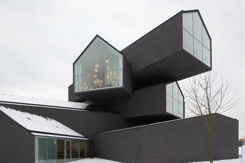 Mit respektvollem Abstand zu den bestehenden Bauten steht auf dem Gelände der Firma Vitra das seit kurzem fertiggestellte VitraHaus der Architekten Herzog & de Meuron. Die aufeinander gestapelten Bauvolumen aus Beton mit grossen Fensteröffnungen in jede Himmelsrichtung wirken gemäss ZPF Ingenieure aus Basel als Rohrkonstruktionen: Stabil in ihrer Form leiten sie die Kräfte weiter – teils über Umwege, aber stets im Verborgenen.