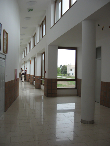 The classrooms are on the Southern side, connected with a long corridor – but it is dissected as we moved the six blocks of the classes like saw teeth. In these extra space-corners children can hide from supervisor eyes. Every child has his own locker. Almost every classroom has its own teacher’s room to keep all accessory of teaching and where teachers can take a little brake in silence during the rush of the day.