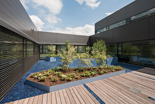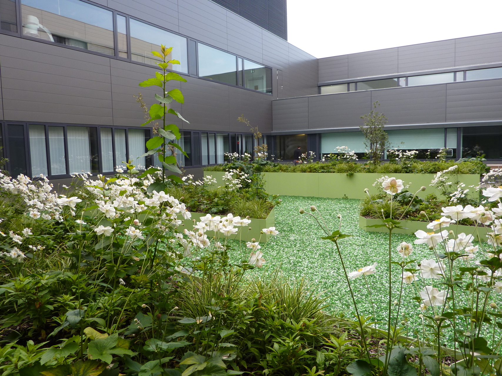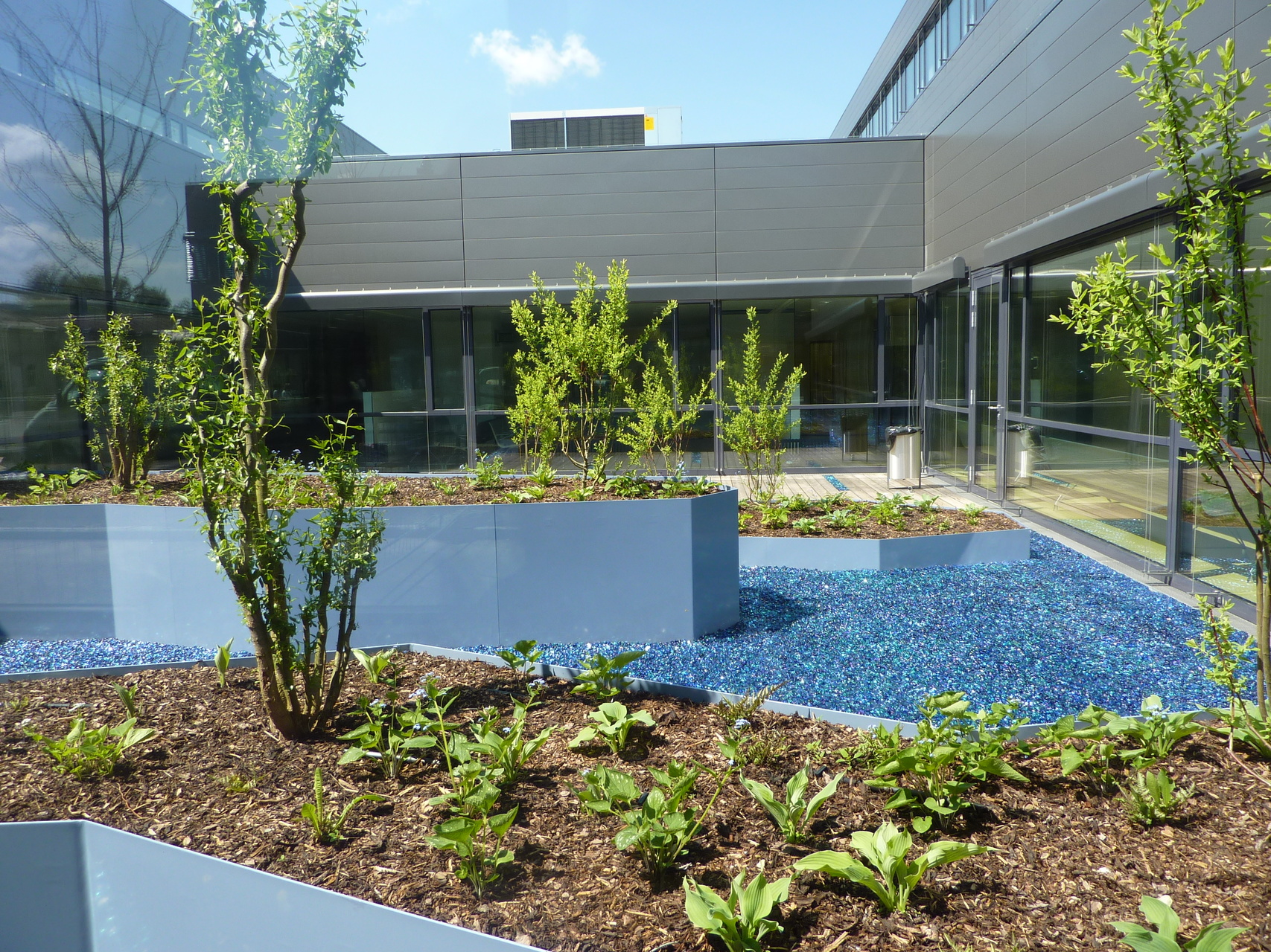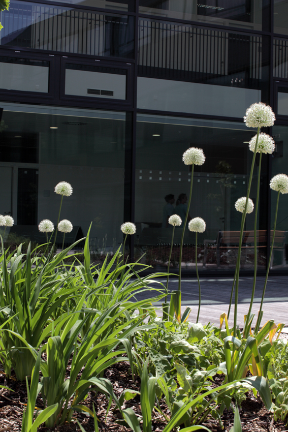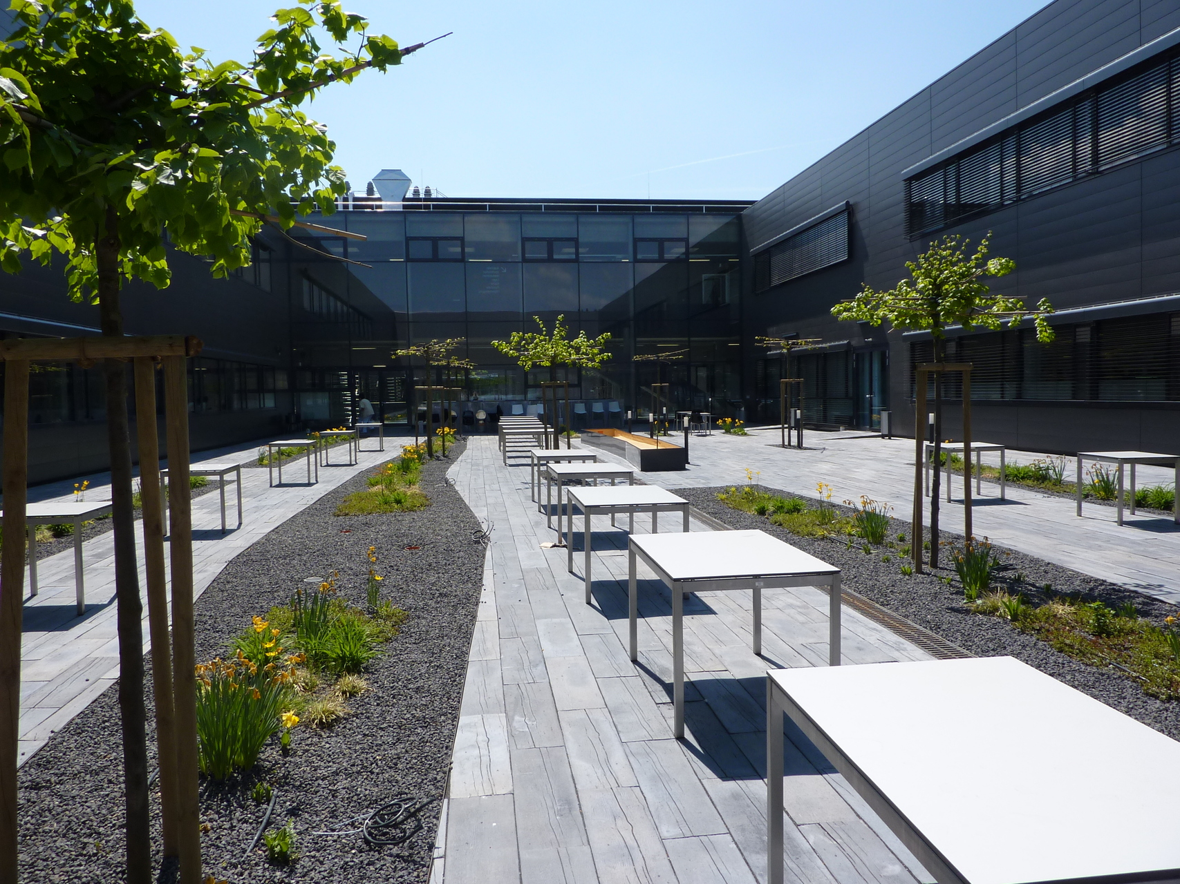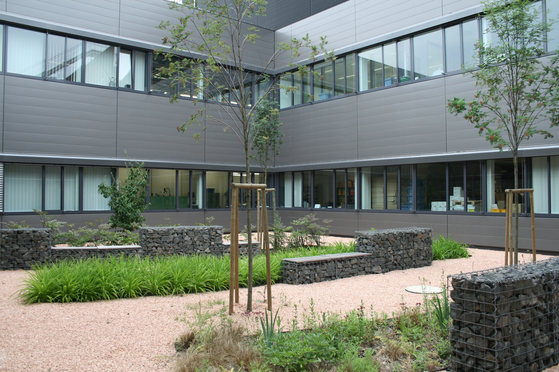 Die durch die Struktur entstandenen Innenhöfe sind grundsätzlich eine räumliche Bereicherung, laden aber durch ihren hohen Grad an Gestaltung wenig zum verweilen ein und bleiben so größtenteils leider nur überdimensionale „Schauvitrinen“.