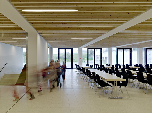 Die bestehende Volksschule wurde durch drei zusätzliche Klassenräume erweitert. Diese wurden auf dem Dach des Mehrzwecksaales errichtet. Durch den hellen und großzügigen Pausen- und Erschließungsbereich mit seinen raumhohen Glaselementen werden die Klassenräume natürlich belichtet. Im Südosten der Klassen ist die Fassade ebenfalls mit einer raumhohen Verglasung ausgestattet, um eine bestmögliche Belichtung zu gewährleisten. Den Klassenräumen sind beiderseits ausreichende Freibereiche vorgelagert. Insbesondere die im Südosten befindlichen Terrassen bieten zusätzliche hochwertige Freibereiche, welche in Pausenzeiten von den Kindern und Betreuern gleichermaßen genutzt werden können. Die Gruppenräume 1 + 2 sind für jeweils ca. 18 Kinder ausgelegt.