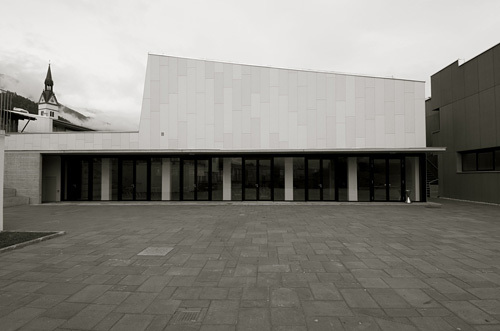 Anstelle einer bestehenden Turnhalle zwischen der Volksschule und dem Kindergarten Vomp wurde ein neuer Mehrzwecksaal errichtet sowie die Volksschule erweitert und der Kindergarten um eine Kinderkrippe ergänzt.Der Mehrzwecksaal mit Bühne und sämtlichen Nebenräumen wurde im Untergeschoss des Neubaus errichtet und wird als kultureller Veranstaltungsort wie auch als hochwertige Sportstätte genutzt. Die großzügige natürliche Belichtung wird über ein Fensterband im Nordosten und einer Fixverglasung Richtung Foyer erreicht. Erschlossen wird der Saal über das zentrale Stiegenhaus der Kinderkrippe sowie über zwei offene Stiegen im Foyer. Die gesamte Bühnendecke ist mit multifunktionalen Einbauten z. B. Bühnenbeleuchtung, Beschallung, herunterfahrbaren Projektionswänden (Bildervorträge, Bühnenbilder etc.) ausgestattet und erlaubt eine Bühnennutzung auf höchstem Niveau. Gleichzeitig wurde sehr großer Wert auf eine einwandfreie Beschallung des Saales gelegt.