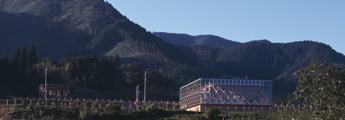 Die Ausgangssituation war klar definiert: In einer Umgebung, die wirtschaftlich wesentlich von der Holzverarbeitung lebt, sollte eine Sporthalle gebaut werden, deren Architektur emblematisch für diesen Wirtschaftszweig steht. Das Raumprogramm sah eine Halle zum Volleyballspielen vor, ergänzt um zwei Räume für kleinere Versammlungen. Als der japanische Architekt Taira Nishizawa erstmals mit den Tragwerksplanern von Arup zusammentraf, war das architektonische Motiv definiert: Wie ein Busch in einer gläsernen Box sollte das Gebäude wirken, wobei mit »Busch« eine amorphe, hölzerne Tragstruktur gemeint war, die von einem geometrisch klar definierten Körper, einem Quader von 22 mal 18 Metern Grundfläche und 9 Metern Gebäudehöhe, umhüllt sein sollte. Die statisch-konstruktive Herausforderung war nun die Entwicklung eines Tragwerks, das diese gestalterische Vorgabe umsetzen konnte.