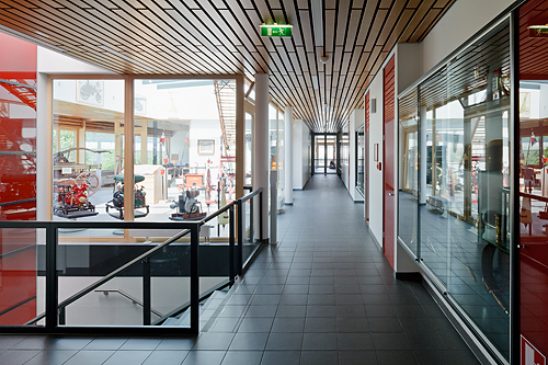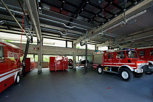 Eine Besonderheit des Einsatzzentrums ist das Feuerwehrmuseum, dessen Exponate in Nischen und Freiräumen platziert wurden, womit die Museumsstücke wie beiläufig in den Alltag integriert sind. (Text: Claudia Wedekind)