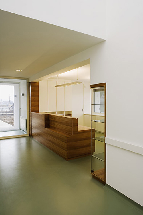 äußere Erscheinungsbild der Arztpraxis prägen. Die Behandlungsräume gruppieren sich um den Wartebereich. Dies wirkt sich positiv auf die Wege und die Orientierung der Patienten aus.