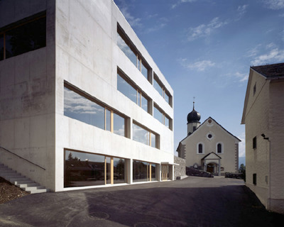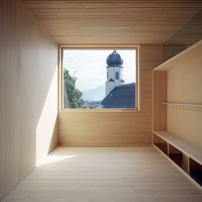 Einem aufwändigen Verarbeitungsprozess, wo in mehreren Arbeitsgängen das Holz durch Trocknen immer wieder ruhig gestellt wird, verdankt der Fußboden seine stabile Form ohne Fugen und Spalten. Zur Pflege der Holzböden sagt der Schuldiener und Landwirt Johann Gieselbrecht: „Etwas Praktischeres gibt es nicht. Einmal in der Woche saugen, zweimal im Jahr mit Wasser reinigen. Und das Holz riecht immer wieder neu.“ Davon ist mittlerweile auch der Amtsarzt beeindruckt, denn die Verwendung von unbehandeltem Holz war von den Architekten gegenüber der Behörde erst einmal durchzusetzen. Nicht zuletzt unter glaubwürdigem Beistand historischer Zeugen, denn im Bregenzerwald sind auch die Kirchen (Doren, Hittisau, Schwarzenberg) mit weißtannenen Böden ausgestattet.