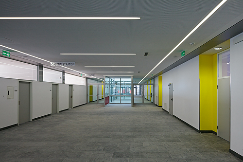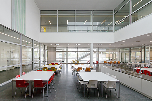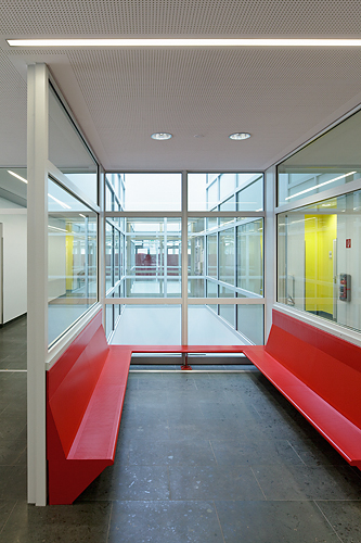 Das Bauwerk ist ein PPP-Projekt, d.h. die Gemeinde Wien mietet den Schulbau auf 20 Jahre. Die Kalkulation der Bauausführung beruht auf Berechnungen, wieviel das Gebäude auf 20 Jahre kosten wird. Dank dieser langfristigen Kalkulation konnten hochwertige Materialien (z.B. Natursteinplatten als Bodenbelag) verarbeitet werden. (Text: Martina Frühwirth)
