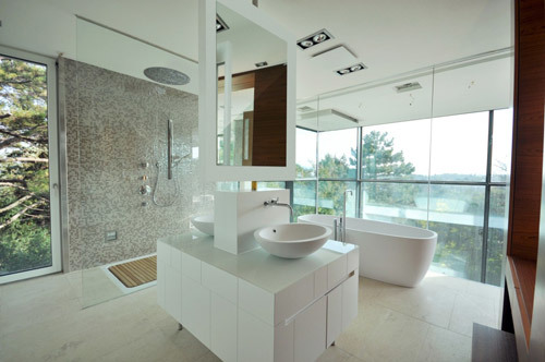 Das Haus erfüllt die Kriterien der Niedrigenergiebauweise: Über einen Erdwärmetauscher wird sowohl geheizt als auch im Sommer gekühlt. Damit erübrigt sich eine zusätzliche Außenbeschattung der großflächigen, sonnenschutzbeschichteten Glasfassade. Eine kontrollierte Wohnraumlüftung mit Wärmerückgewinnung sorgt für einen permanenten Luftaustausch sowie eine gute Luftqualität im gesamten Wohnbereich. Hochwertige Baustoffe mit langer Lebensdauer wurden verwendet, Zentralstaubsauganlage, Wasserbelebung für das Trinkwasser, die chlorfreie Pflege des Schwimmbades sowie Zuluftauslässe für beschlagsfreie Fensterscheiben im Schwimmbad ergänzen das Konzept der Nachhaltigkeit. (gekürzter Text der Architekten)