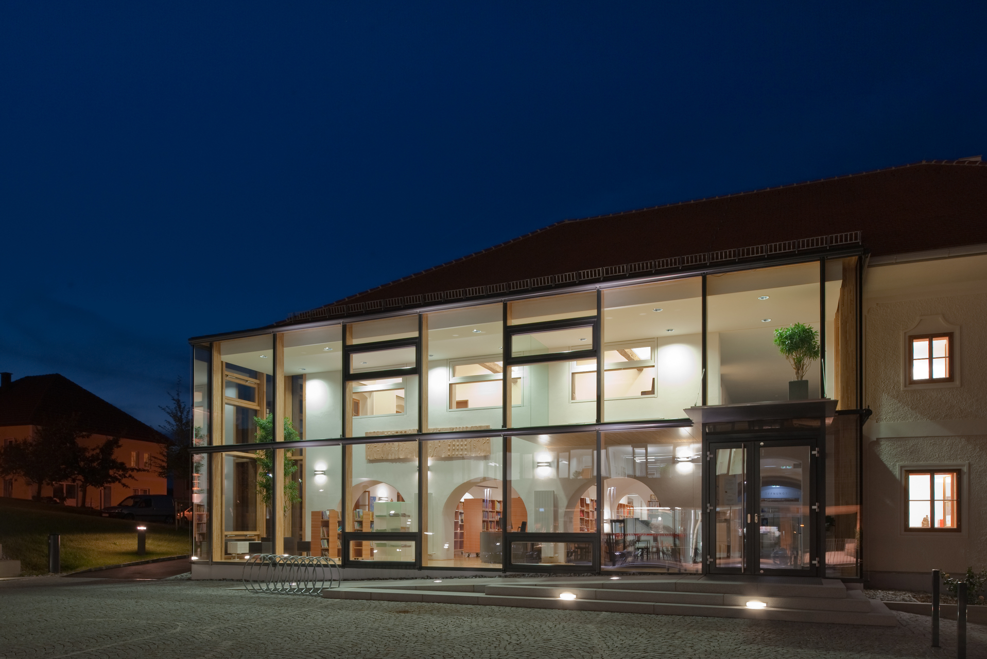 Der denkmalgerecht restaurierte Hausstock des Kadingerhofes wurde um eine gläsern eingehauste Erschließungszone im Norden sowie einen gläsernen Anbau im Süden erweitert. Großzügige Öffnungen zum Wintergarten und Ortsplatz ermöglichen den direkten Bezug zum Ortszentrum.