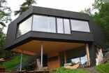 Die Baufrau legte zudem großen Wert auf Naturbelassenheit und Materialechtheit. Beim Schritt in das noch nie Gesehene flimmern die Erinnerungen. Unabhängigkeit und Freiheit, der Geruch des Holzes, die wohlige Wärme des Kaminzimmers, Ausblicke in die Landschaft. Der Raumplan ist offen organisiert. Die Zuordnung der Nutzungen ist weitgehend frei. Die Wohnräume sind auf zwei Etagen untergebracht. Die räumliche Erschließung erfolgt über die Längsseiten. Ein Luftraum als Abendlichtfänger verbindet beide Geschosse. Eine Kaskadentreppe führt nach oben in den hellsten Raum. Der dreiseitige Bügel zur Verschattung fasst einen kleinen Außenraum.