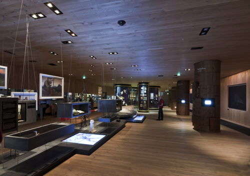 Eine Dauerausstellung zu den Themen Natur, Volkskunde und Religion, vor der man sich unter normalen Umständen furchtbar gruseln müsste, lädt zum Auskundschaften ein. Der Stuttgarter Ausstellungsplaner HG Merz hat es geschafft, das wahrlich undankbare Themenpotpourri interessant und witzig zu gestalten. Da hängt eine Seilbahngondel aus den Fünfzigerjahren neben einem High-Tech-Skischuh aus der Gegenwart, da liegt ein kantiger Quarz neben einer Flasche Enzianschnaps, da sitzt ein Braunbär neben einem schnuckeligen Bauernhausmodell.