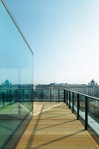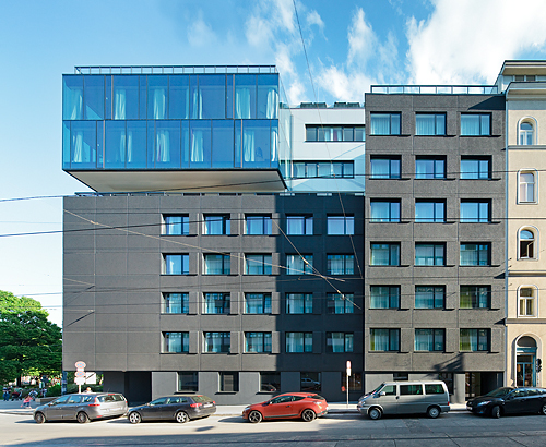 Verantwortet wird der Umbau von den Wiener BWM-Architekten, die vom Bauträger Jelitzka und Partner ab 2007 ins Boot geholt wurden, das Studentenheim zu einem Bürohaus umzubauen, ehe die Finanzkrise eine Hotelnutzung als lukrativere Option erscheinen ließ. Ein weiser Entschluss, wie sich im Nachhinein zeigt: Der Laden brummt. Was hat aber nun diese Umgestaltung abseits des wirtschaftlichen Erfolges von Besitzer und Pächter für das Gebäude und sein Umfeld in architektonischer und städtebaulicher Hinsicht gebracht? Aufbauten können den darunterliegenden Bestand ebenso arg beeinträchtigen wie das Stadtbild, wie uns der Wildwuchs an Aufstockungen mittlerweile in allen inneren Stadtbezirken vor Augen führt. Zudem sind gestalterisch gelungene Adaptierungen von Bauten der 1960er und 1970er eine Rarität. Deren strukturelle Qualitäten verschwinden beim Versuch, die Gebäude bauphysikalisch auf heutige Standards zu bringen meist hinter fetten Vollwärmeschutzfassaden. Energetisch mag das Vorteile bringen, ästhetisch sicher nicht.
