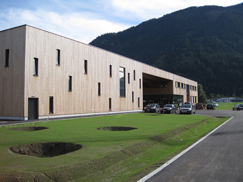 Das in Holzelementbauweise in Verbindung mit Ortbetondecken in sehr kurzer Zeit errichtete Gebäude wurde 2011 mit dem Holzbaupreis für Salzburg und Tirol ausgezeichnet. Der Restaurant- und Büroteil wurde in Passivhausqualität mit hoch gedämmter Gebäudehülle, Passivhausfenstern und Komfortlüftung realisiert. (Text: Claudia Wedekind)