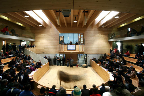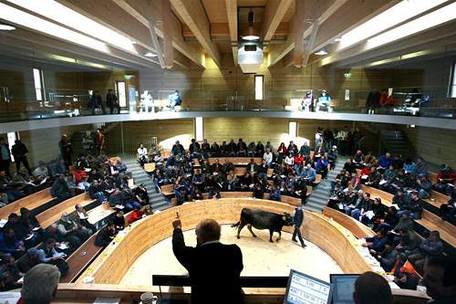 Das auf dem Gelände des ehemaligen Viehhofes in Imst errichtete Agrarzentrum West ist das landwirtschaftliche Vermarktungszentrum im Tiroler Oberland, wo jährlich mehr als 10.000 Tiere in erster Linie bei Versteigerungen den Besitzer wechseln. Nachdem in den ersten beiden Baustufen umfangreiche Stallungen errichtet wurden (Architektur: Walter Vögele), sollten in einer dritten Bauphase eine an die Stallungen angeschlossene Versteigerungshalle, diverse Büroräumlichkeiten und ein Restaurationsbereich das Agrarzentrum komplettieren.Das aus einem geladenen Wettbewerb hervorgegangene Projekt von Raimund Rainer bringt sämtliche Funktionen in einem zweigeschossigen Riegel unter, der als ordnender Baukörper vor die Stallungen gestellt ist und die Gesamtbebauung damit zu einem logischen Abschluss bringt. Im nördlichen Teil ist die über ein Foyer erschlossene Versteigerungshalle mit Tribüne und umlaufender Galerie untergebracht. Im südlichen Trakt befindet sich erdgeschossig die Gastronomie und ein Lagerraum für den Maschinenring, darüber die eigens erschlossenen Büro- und Nebenräume für Landwirtschaftskammer und Maschinenring.