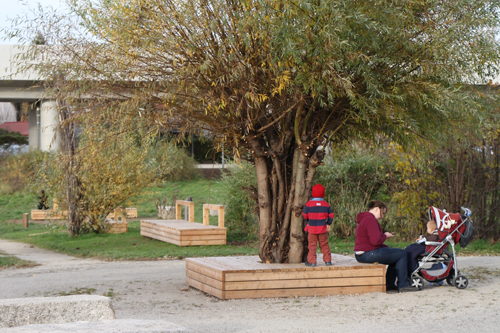 kooperative Umsetzung: In Kooperation mit space!lab werden Teilbereiche des Konzepts seit Juni 2010 umgesetzt. Ausgrenzungsgefährdete Jugendliche bauen dabei unter fachlicher Anleitung angreifbare Objekte und lernen mit arbeitsmarktnahen Bedingungen umzugehen. Eine Weiterführung der Kooperation im Jahr 2011 ist geplant. zwopk Landschaftsarchitektur
