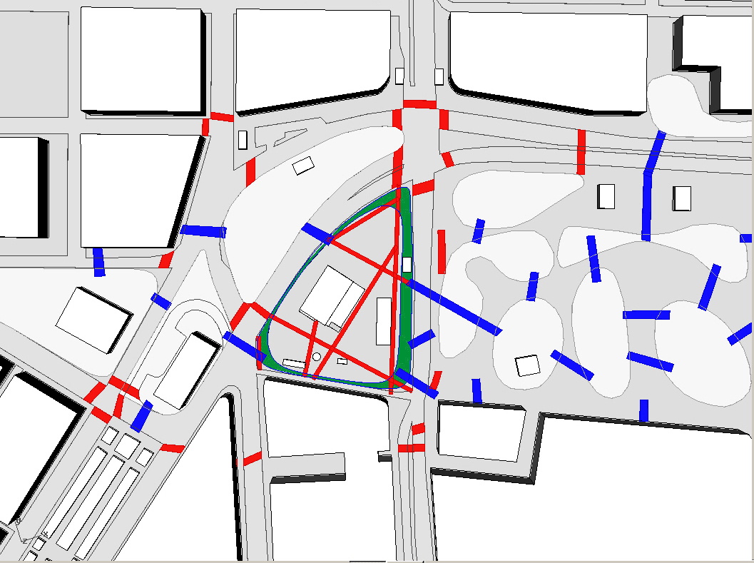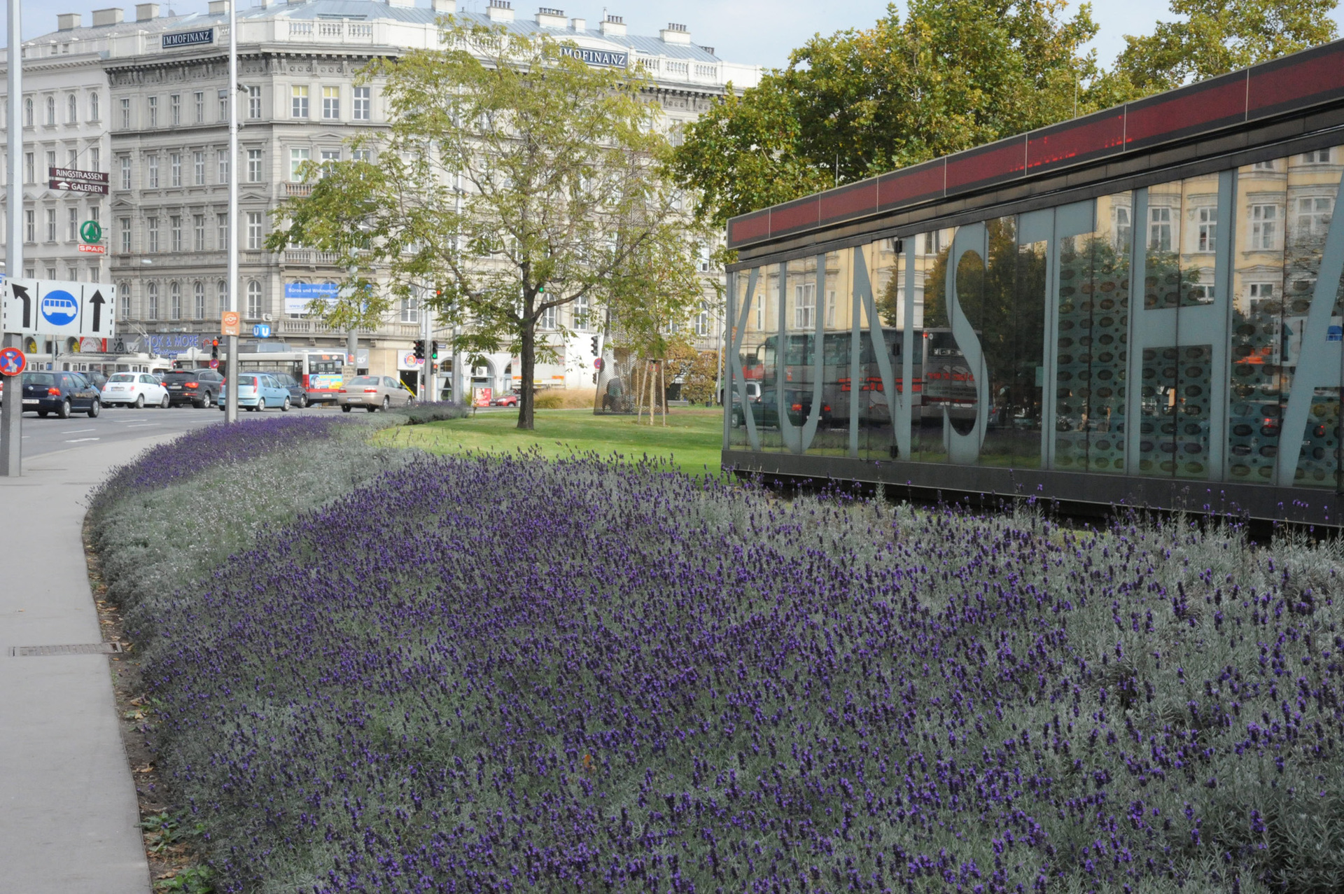 Die Kunsthalle ist ein vom Verkehr umspülter Bereich, dem vorher primär die Qualität eines Abstandsgrüns anhaftetete. Der Bereich ist aber auch Auftakt und Vermittler vom Naschmarkt zum Karlsplatz. Dem Raumfluss folgend wird daher nun ein landschaftlicher Bogen aufgespannt. Ein städtebaulicher, begleitender Grünrücken gibt dem Bereich einen Halt zur stark frequentierten Bundesstrasse.Übergeordnetes Ziel war es die Fußgänger am Karlsplatz wieder nach oben zu holen. Wichtige Wegbeziehungen wurden eruiert und zusätzliche Fußgängerübergänge geplant, um die von den Strassen gebildeten Inseln besser miteinander zu verbinden. Parallel dazu wurde die bislang unschlüssige Wegestruktur am Rosa-Mayreder-Park neu entwickelt.