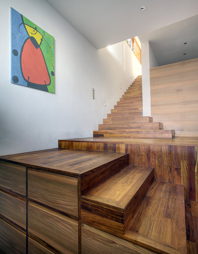 Die Energiegewinnung für die Heizung erfolgt mit Erdwärme und wird durch Sonnenkollektoren am Dach unterstützt. Eine Komfortlüftung sorgt je nach Jahreszeit für vorgewärmte oder gekühlte Frischluft im gesamten Gebäude. (Text: Architekt)