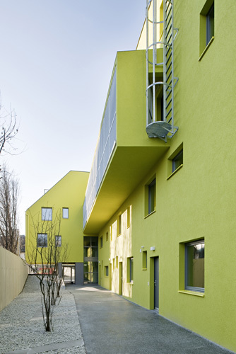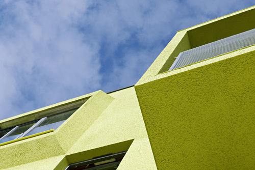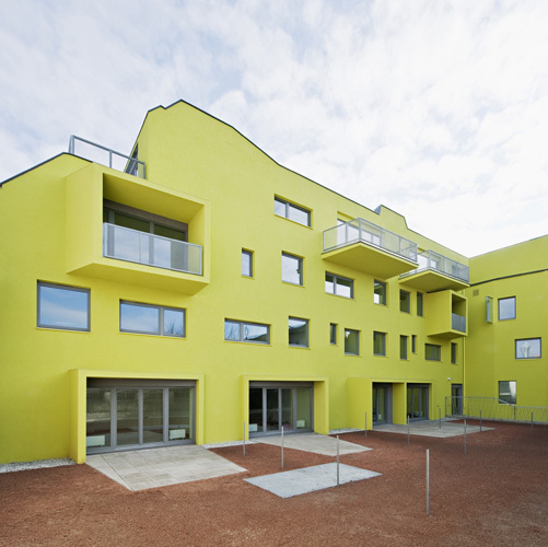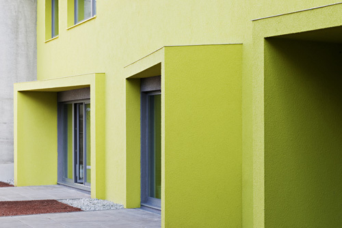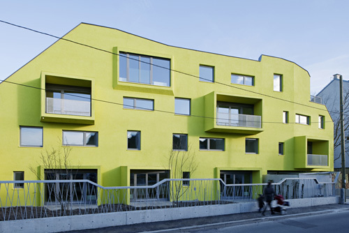 Das gebäude ist als Niedrigenergiehaus nach den Kriterien eines Klimaaktivhauses errichtet. Die Stahlbetonmassivbauweise mit hochwärmedämmender Grobputz-Vollwärmeschutzfassade sorgt für geringen Wärmeverlust sowie als Schutz vor sommerlicher Überhitzung. Die den grosszügigen Wohnzimmerverglasungen vorgelagerten Loggienkonstruktionen bilden zusätzlichen Sonnenschutz. (Text Architekten, redaktionell gekürzt)