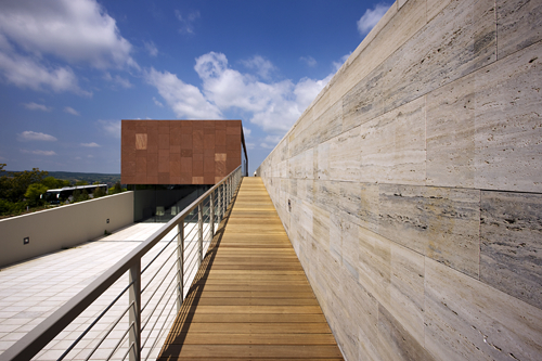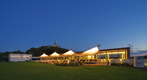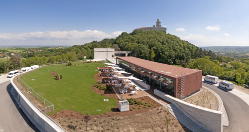 The development site is located on the Kosaras Hill in the immediate vicinity of the World Heritage listed Arch-abbey. Prior to the development, the Kosaras Hill used to be covered with asphalt and serve as a parking lot for the tourists who visited the Arch-abbey without available quality infrastructure or hospitality services. Therefore the most important aspect of the architectural concept – its first fundamental architectural principle - was to restore the natural environment of this site.