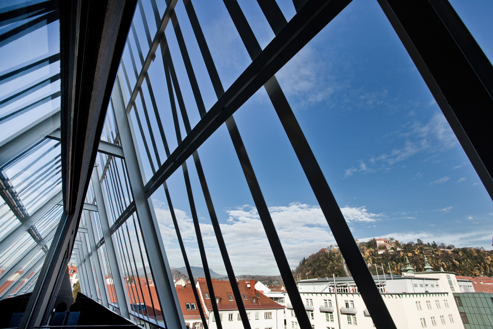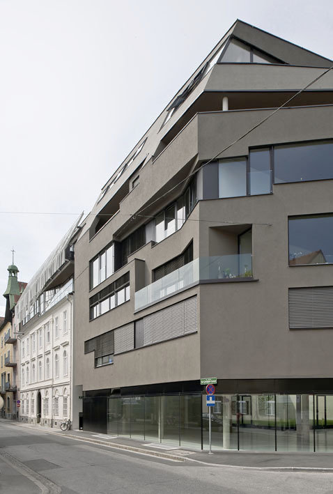 Bei dem Neubau wurden großzügige Geschäftsflächen eingeplant, im Erdgeschoß befinden sich auf rund 350 m² eine multifunktionale Halle, darüber, aufgeteilt auf fünf Geschoße, 28 Eigentumswohnungen, von 35 m²-Garconnieren aufsteigend bis zum Penthouse mit maximal 160 m² Wohnfläche – edle Wohnungen mit Dachterrassen und Blick auf den Schlossberg.