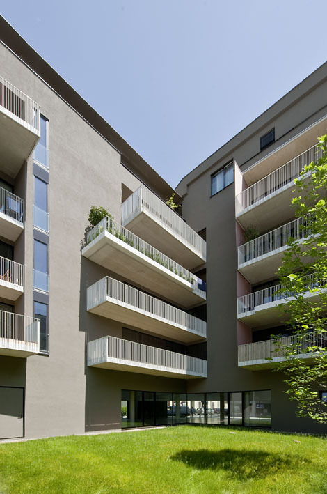 Bei der Planung wurden Flexibilität und offenes Wohnen in den Vordergrund gestellt. Auffällig sind die Säulen, die selbstbewusst im Raum stehen, zum einen aus statischen Gründen, zum anderen, um flexible Grundrisse zu ermöglichen. Die Trennwände sind zum Großteil in Leichtbauweise ausgeführt. Alle Betonflächen sollten als Sichtbeton erhalten bleiben, wogegen sich jedoch manche Eigentümer aussprachen. Statt einer Reihe gleich genormter Fenster finden sich große Parapetunterschiede: Einige Fenster beginnen 90 cm oberhalb des Bodens, andere bei 30 oder 40 cm, manche sind raumhohe Verglasungen.