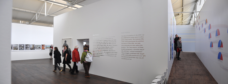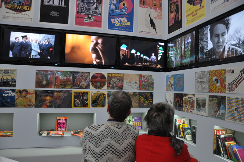 Sie wird zur geitigen Mitte der Ausstellung, und gibt die notwendigen Hintergrundinfos: einerseits den Kontext der Zeit (Ölkrise, Beat Generation, Babyboom, Dirty Realism) in einer Art Wandelgang mit Grafiken, Texten, Bilder und Fotomaterial, anderseits im sogenannten „Herz“ als Präsentation der die damaligen Zeit prägenden Medien: Bücher, Filme, Nachrichten, Musik. Die Besucher steigen dabei in eine die 70er Jahre prägende Sitzlandschaft ein, verweilen alleine oder gruppieren sich. Der Innenraum mit dem Wandelgang ist von allen Seiten zugänglich, und man kann in diese Ebene während der Austellung immer wieder eintauchen.