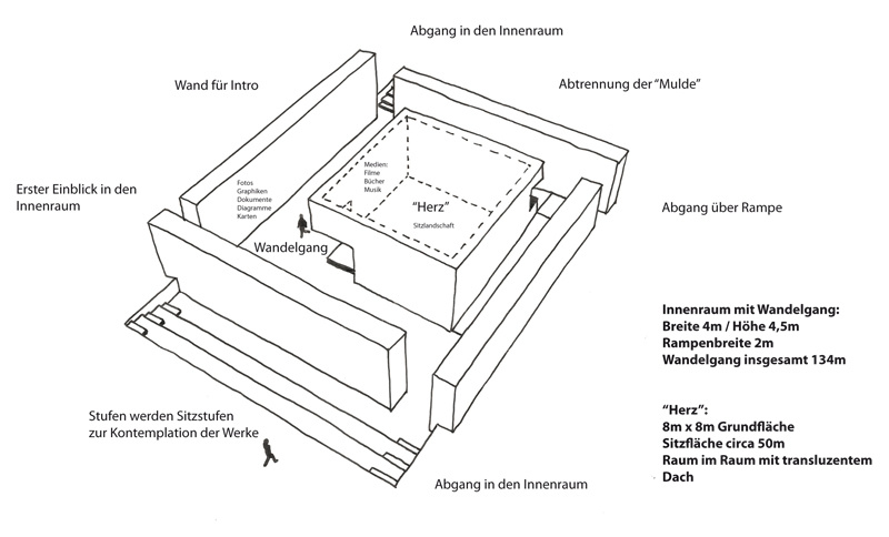 Die große Halle dient als Einstieg und als Ausstellungsraum mit den jeweiligen wichtigen Arbeiten. Von diesem Zentralraum tauchen die Besucher dann ein in die klar definierten unterschiedlichen Räume. (Text: Architekten)