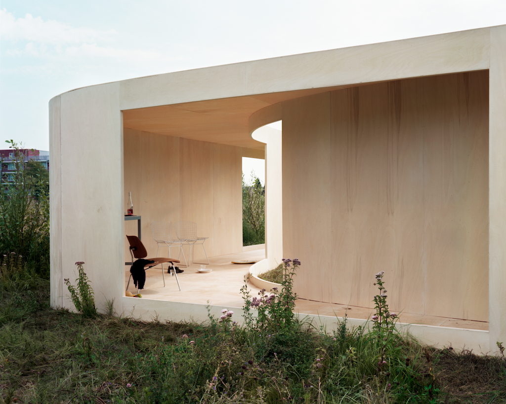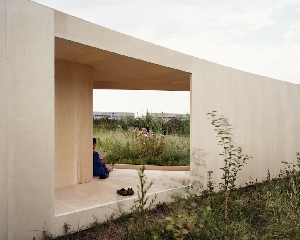 Und auch im Inneren des 100 m² großen Gebäudes aus Pappelsperrholz ist Pionierleistung gefragt. Ineinander übergehende Räume, die sich teilweise wandlos ins Freie öffnen, folgen den alten Pfaden und erlauben Entdeckungen, wollen erobert und besetzt werden. Mittels selbstgewählter Funktion definiert der Bewohner den Raum. Am Ende eines blinden Korridors setzt er das Bad, eine lange Raumfolge teilt er in Arbeitszone und Küchenbereich und wird so zum Pionier seines individuellen Lebensraums. Architektur als Anregung.