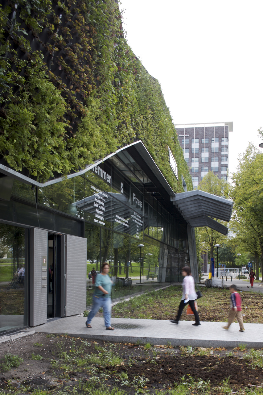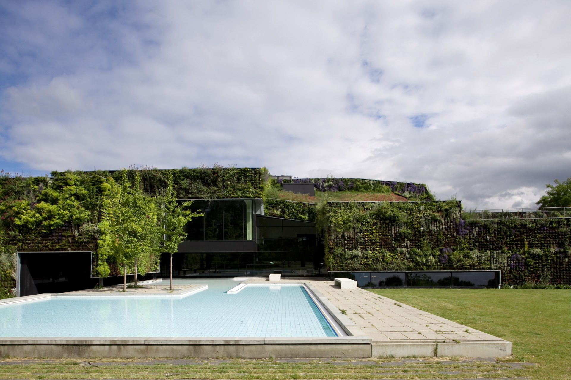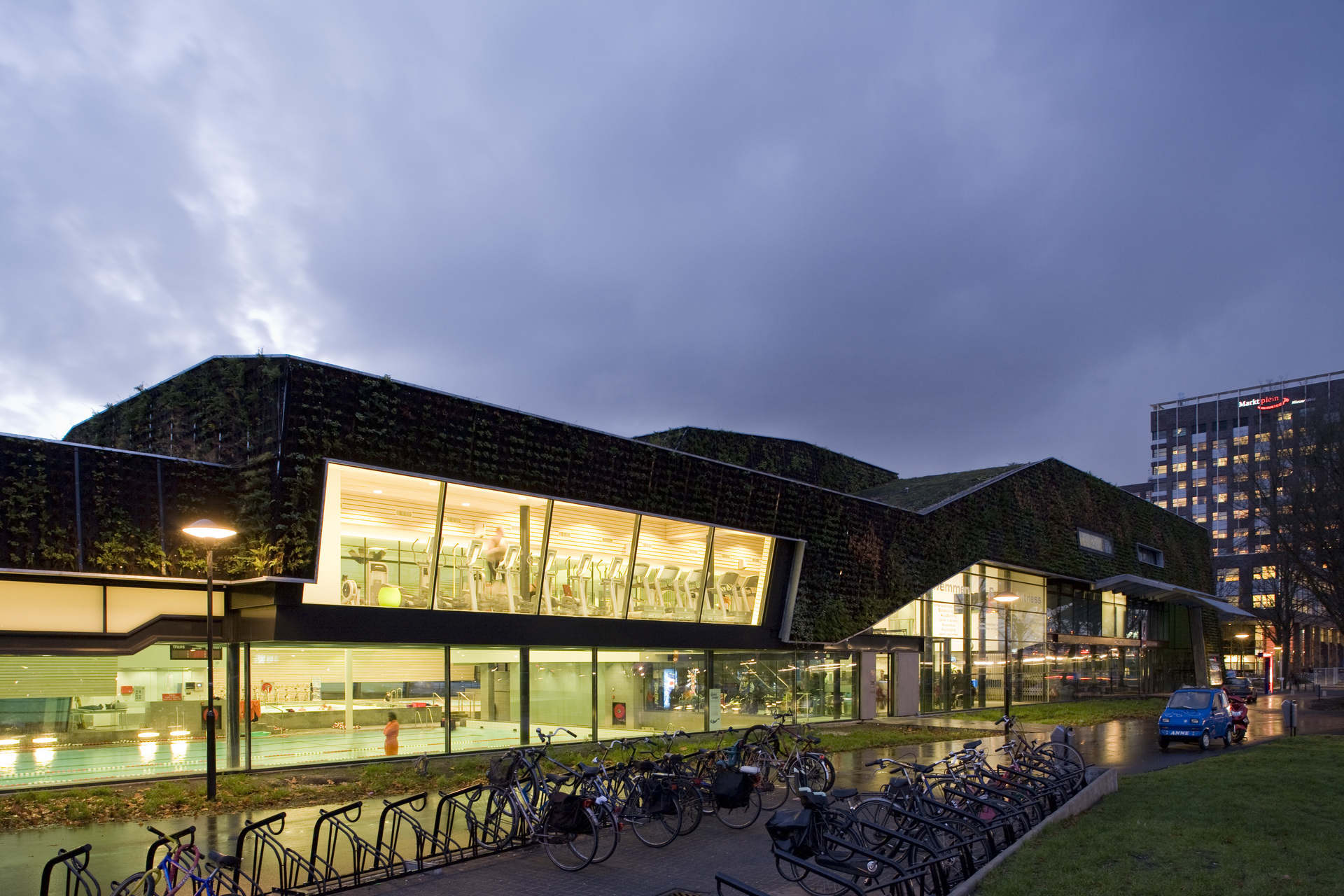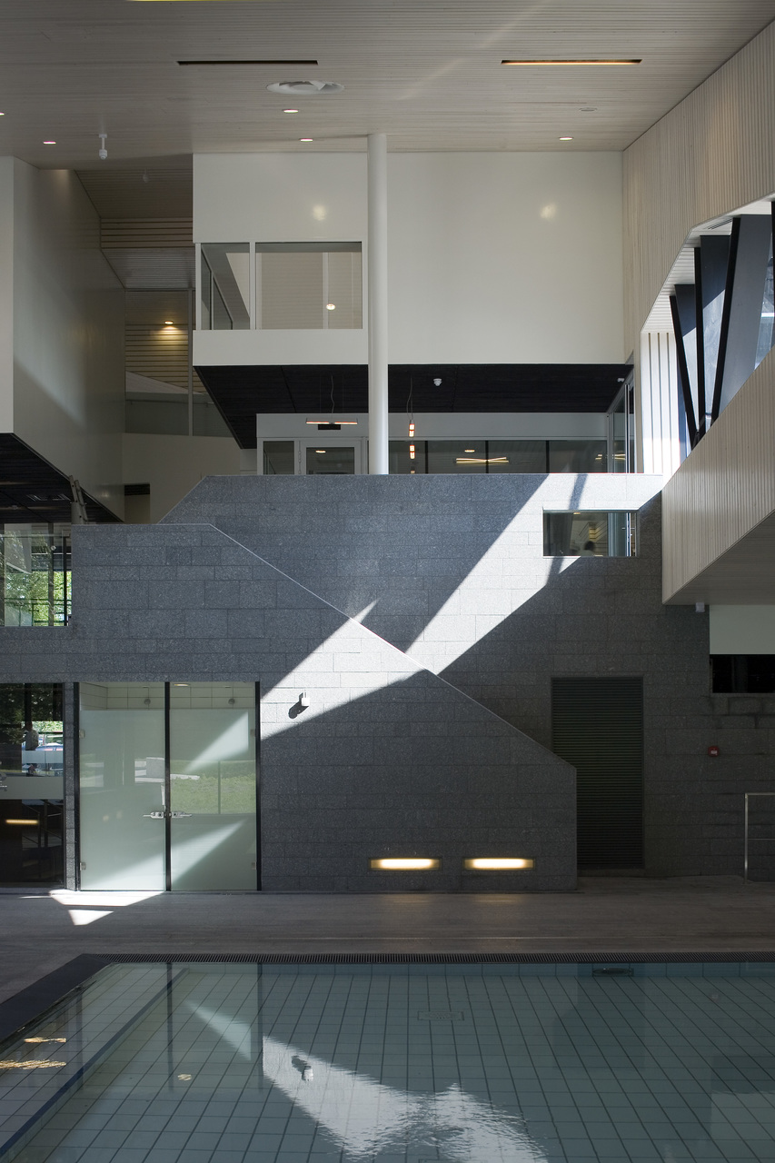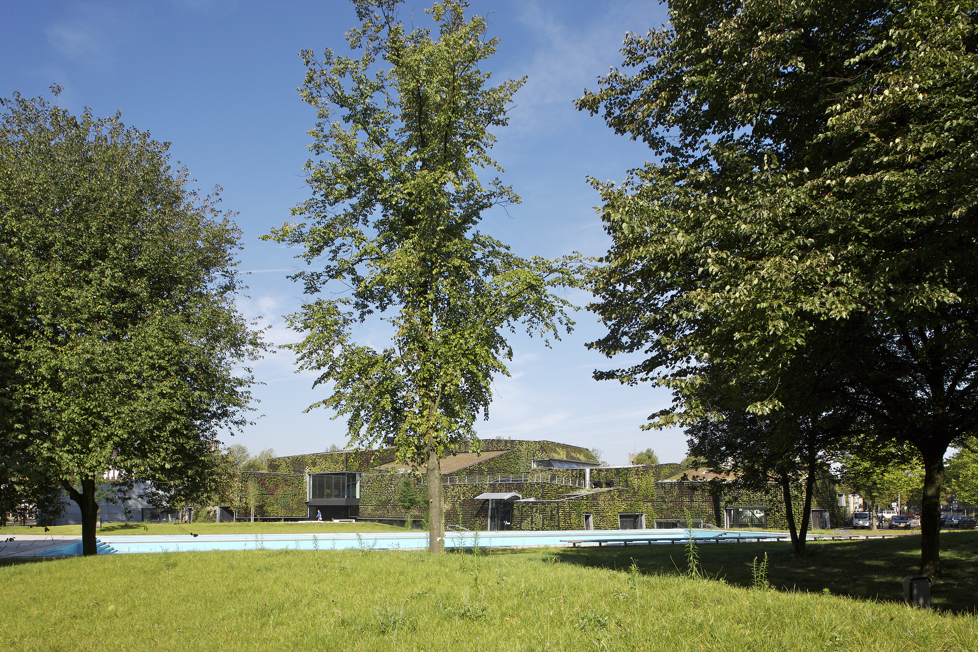 Ein urbanes Netzwerk von schmalen Durchgängen und gerahmten Aussichten verbindet zahlreiche unterschiedliche Raumfunktionen wie Schwimmhalle, Therapiereinrichtungen, Fitnesscenter, Partyräume Cafes, Restaurants und Imbissbuden. Freien Sichtbeziehungen zwischen den einzelnen Bereichen sollen Neugierde wecken und das Kennenlernen fremder Kulturen und Aktivitäten erleichtern. Mittels dicht bewachsener Außenhaut setzt sich die Auflösung der Grenzen auch zum benachbarten Gelände des Rembrandt Parks hin fort. (Text: Helga Kusolitsch)