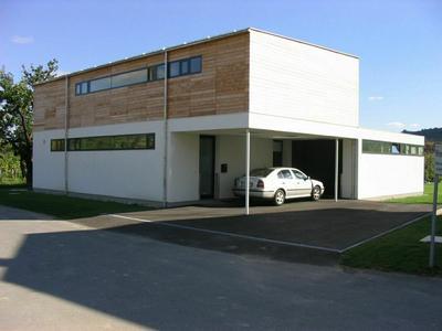 Die Wohnvorstellungen waren inzwischen zur Präzision gediehen. Man wollte ökologisch bauen, mit Keller, zwei großen Kinderzimmern, geräumiger Küche bei getrenntem Ess- und Wohnbereich. Bauherr und Baufrau sind Hobbytischler, brauchten Werkstatt und Garage. Ein mit dem NÖ-Holzbaupreis 2002 ausgezeichnetes Einfamilienhaus in Nitzing bei Tulln gefiel, und so wandte man sich an dessen Planer, Franz Schartner.