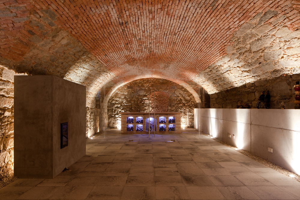 Im Untergeschoss wurde ein bestehender rund 400 Jahre alter Gewölberaum saniert, und spannt die Brücke von alter Tradition zu moderner Architektur. (Text: Architekten)