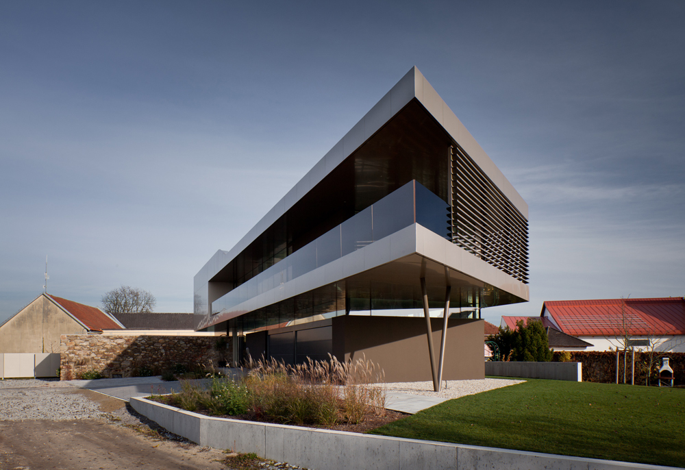 Das Grundstück befindet sich am höchsten Punkt von Wartberg in der Nähe der Wenzelskirche und bietet somit eine perfekte Aussichtslage Richtung Süd-West-Nord. Wir nahmen diese Aussichtspunkte in unseren Entwurf auf und hoben die Wohn-bzw. Schlafebene in das 1.Obergeschoss. Die Öffnungen in diesem Geschoss orientieren sich zum 1. zur Sonne und zum 2. auf Blickbeziehungen in der Landschaft.